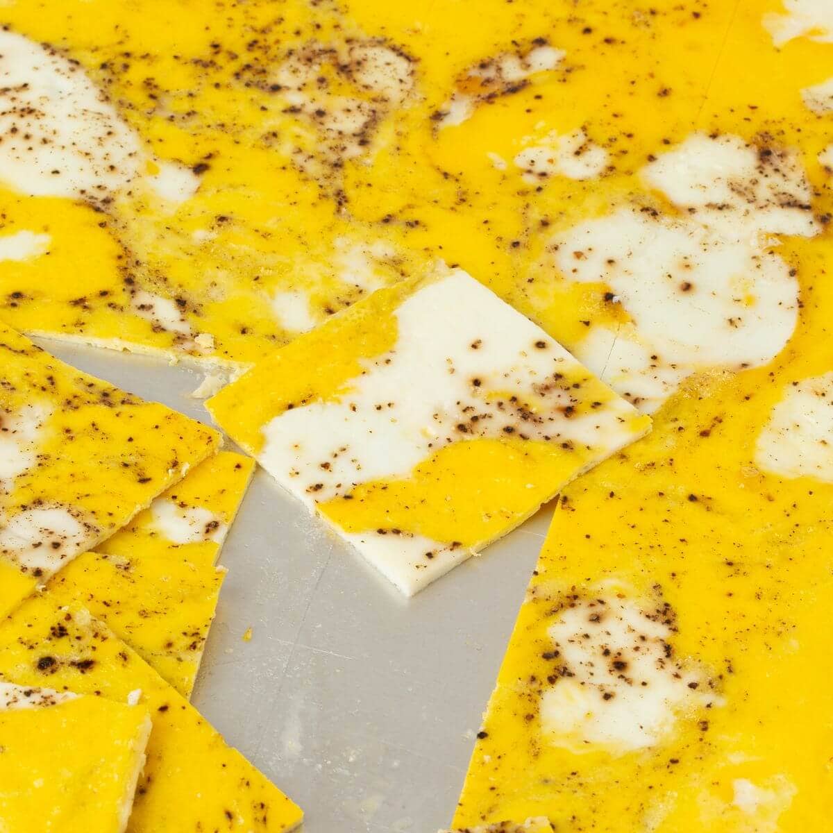 1 Generously grease a half sheet pan with olive oil or cooking spray. 2 Crack eggs ([adjustable]16[/adjustable] large) directly onto the pan. 3 Add milk ([adjustable]1[/adjustable] tablespoon) and gently mix using a fork to break apart the egg yolks and egg whites. I like to keep some of the yolks and whites visibly separated but you can fully scramble if you prefer. Top with salt and black pepper. 4 Bake at 350°F for 12-14 minutes. Once cool, slice into individual slices with a sharp knife or pizza cutter and use for breakfast sandwiches, crunchwraps or enjoy plain!View original recipe